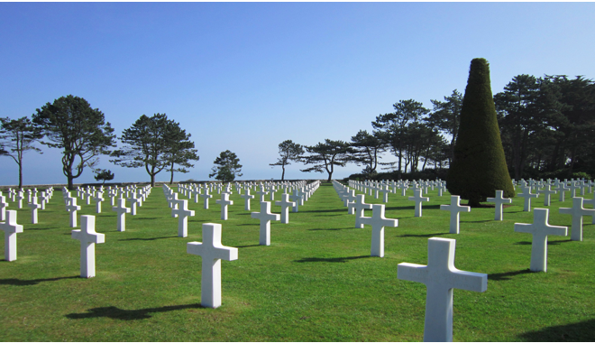 第二次世界大战中的诺曼底登陆点一共有五个海滩,而奥马哈滩的战斗是最血腥的。这里的海岸有德军重兵把守,猛烈的海风又将登陆部队吹离了原先预计好的作战点。虽然最终盟军成功登陆,但过程中有将近1000名士兵丧生。美军公墓就在奥马哈滩的崖边,是美国军队在欧洲最大的墓群,是为了纪念9387名牺牲的士兵和1557名至今仍下落不明的士兵而修建。